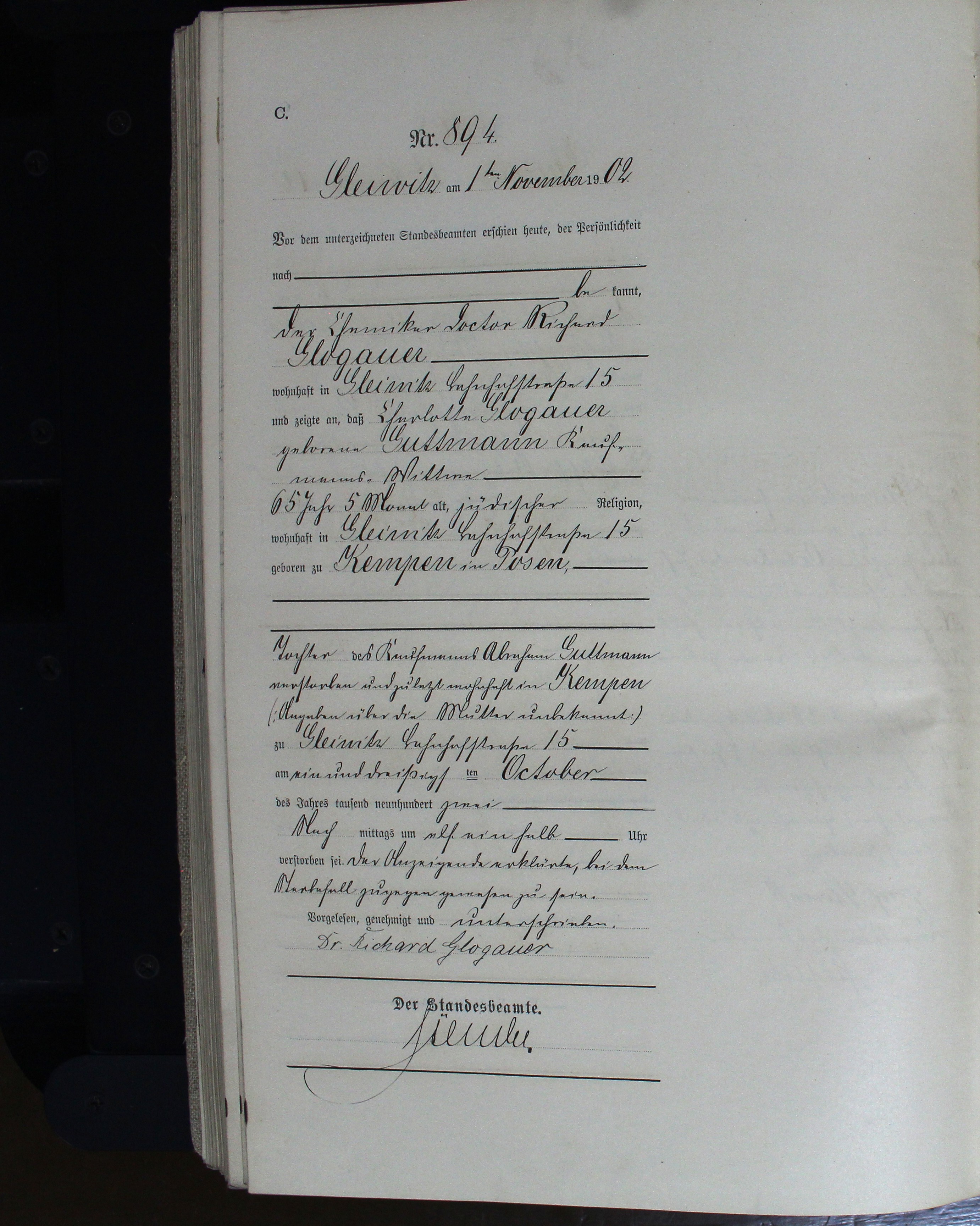Data i miejsce śmierci31.10.1902, Gleiwitz